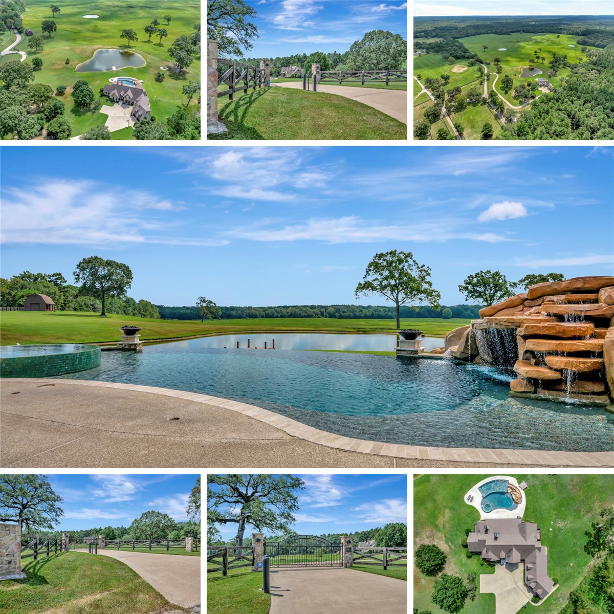 As you pass through the gated entrance, you’re immediately welcomed by peace and privacy on this remarkable 203-acre estate. A winding drive leads to a beautifully designed home with an open, flowing floor plan that captures sweeping views of the rolling landscape. The residence offers five bedrooms, including two on the main level with a luxurious primary suite, and three additional bedrooms upstairs. Thoughtful spaces include a private office, an upstairs game room, and tasteful updates throughout. Outdoors, enjoy resort-style living with an infinity-edge pool, spa, dual water slides, and an inviting fireplace. The land is equally impressive, featuring a large pond with a pier, two additional ponds, scenic creeks, and walking trails frequented by abundant wildlife. A barn provides extra storage, and partial fencing adds flexibility. This extraordinary property seamlessly blends refined living with the beauty of nature.