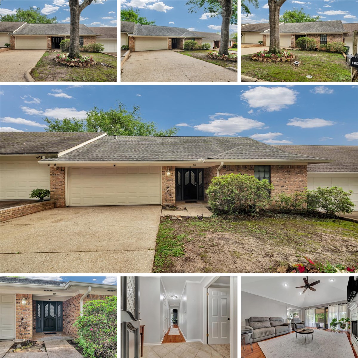 Welcome to this easy-to-maintain 2 bedroom, 2 bathroom townhome in North Nacogdoches. Spanning 1,427 sq. ft., this home features spacious bedrooms and common areas, a cozy gas fireplace, a two-car garage, and a fenced backyard. As you enter, you'll be greeted by a stylish tile entry that flows seamlessly into hardwood flooring, leading down the hall to the inviting living room. To the right, the first bedroom is positioned at the front of the home, offering a generous walk-in closet and convenient access to the full common bathroom. At the back of the home, discover the primary suite, complete with a large window overlooking the backyard, a spacious bathroom, and an ample closet featuring built-in shelving and drawers. The main living area boasts elevated ceilings, large windows, and a warm gas fireplace. You'll also find a dedicated dining area and a tidy galley kitchen, with all appliances included for you convenience. The fenced backyard features a square-shaped, deep covered patio.